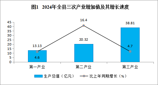 根據(jù)縣(市)生產(chǎn)總值統(tǒng)一核算結(jié)果,全年全縣地區(qū)生產(chǎn)總值72.26億元,比上年增長7.8%。其中,第一產(chǎn)業(yè)增加值13.13億元,比上年增長4.6%,占地區(qū)生產(chǎn)總值的比重為18.2%;第二產(chǎn)業(yè)增加值20.32億元,比上年增長16.4%,占地區(qū)生產(chǎn)總值的比重為28.1%;第三產(chǎn)業(yè)增加值38.81億元,比上年增長4.7%,占地區(qū)生產(chǎn)總值的比重為53.7%。全年全縣人均地區(qū)生產(chǎn)總值42937元,比上年增長6.9%。報告模板_模版下載_資料共享