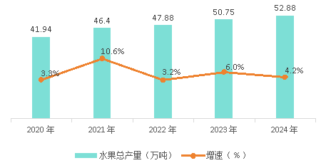 2020-2024年彬州市水果總產(chǎn)量及增速