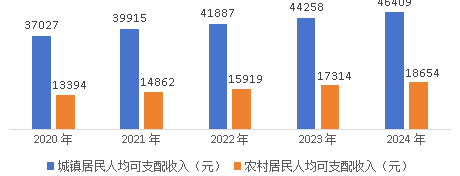 2020-2024年彬州市城鄉(xiāng)居民人均可支配收入