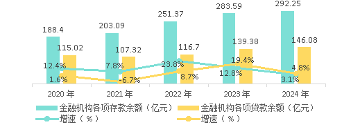 2020-2024年彬州市金融機(jī)構(gòu)各項(xiàng)存貸款余額及增速