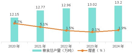 2020-2024年彬州市糧食總產(chǎn)量及增速