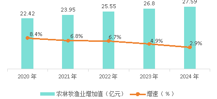 2020-2024年彬州市農(nóng)林牧漁業(yè)增加值及增速