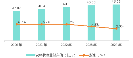2020-2024年彬州市農(nóng)林牧漁業(yè)總產(chǎn)值及增速