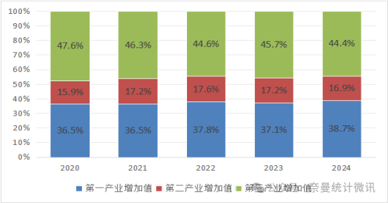 2020-2024年奈曼旗三次產(chǎn)業(yè)增加值占地區(qū)生產(chǎn)總值比重