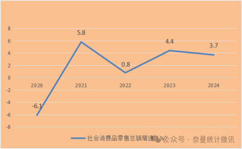 2020-2024年奈曼旗社會消費品零售總額增長速度