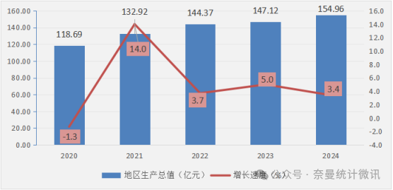 2020-2024年奈曼旗地區(qū)生產(chǎn)總值及其增長速度
