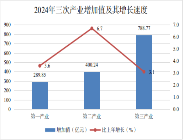 根據(jù)地區(qū)生產(chǎn)總值統(tǒng)一核算結(jié)果,全年地區(qū)生產(chǎn)總值1478.86億元,比上年增長(zhǎng)4.2%。其中,第一產(chǎn)業(yè)增加值289.85億元,比上年增長(zhǎng)3.6%,占地區(qū)生產(chǎn)總值的比重為19.6%;第二產(chǎn)業(yè)增加值400.24億元,比上年增長(zhǎng)6.7%,占地區(qū)生產(chǎn)總值的比重為27.1%;第三產(chǎn)業(yè)增加值788.77億元,比上年增長(zhǎng)3.1%,