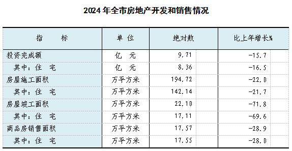 全年房地產(chǎn)開發(fā)投資9.71億元,比上年下降15.7%。其中,住宅投資8.36億元,下降16.5%;商業(yè)營業(yè)用房投資0.08億元,增長32.0%。