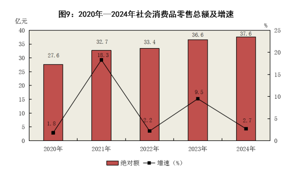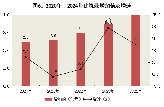 初步核算,全年全縣生產(chǎn)總值433.3億元,按可比價格計算,比上年增長7.1%。其中,第一產(chǎn)業(yè)增加值14.8億元,增長4.1%;第二產(chǎn)業(yè)增加值338.7億元,增長8.5%;第三產(chǎn)業(yè)增加值79.8億元,增長3.1%。三次產(chǎn)業(yè)占GDP比重為3.4:78.2﹕18.4,三次產(chǎn)業(yè)對經(jīng)濟增長的貢獻率分別為2.5%、88.2%和9.3%,分別拉動經(jīng)濟增長0.2、6.3和0.7個百分點。第三產(chǎn)業(yè)中,金融業(yè)增加值5.1億元,增長15.2%,對經(jīng)濟增長的貢獻率為2.8%,拉動經(jīng)濟增長0.2個百分點;交通運輸、倉儲郵政業(yè)增加值9.3億元,下降3.0%,對經(jīng)濟增長的貢獻率為-1.2%,下拉經(jīng)濟0.1個百分點;批發(fā)和零售業(yè)增加值14.2億元,增長8.0%,對經(jīng)濟增長的貢獻率為3.7%,拉動經(jīng)濟增長0.3個百分點;營利性服務業(yè)增加值8.3億元,下降10.0%,對經(jīng)濟增長的貢獻率為-4.4%,下拉經(jīng)濟0.3個百分點;非營利性服務業(yè)增加值34.3億元,增長6.5%,對經(jīng)濟增長的貢獻率為7.7%,拉動經(jīng)濟增長0.6個百分點。按常住人口計算,人均地區(qū)生產(chǎn)總值228594元,按2024年平均匯率計算為32098美元。