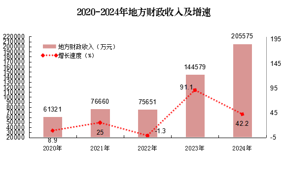 全年累計完成地方財政收入205575萬元,完成年初預(yù)算的125.7%,較上年增加60996萬元,同比增長42.2%。其中,完成一般公共預(yù)算收入87657萬元,完成年初預(yù)算的115.3%,較上年增收21601萬元,同比增長32.7%(其中:完成稅收收入42155萬元,完成年初預(yù)算的79.8%,較上年減少3645萬元,同比下降8.0%;完成非稅收入45502萬元, 完成年初預(yù)算的196.1%,較上年增收25246萬元,同比增長124.6%);完成政府性基金收入117918萬元,完成年初預(yù)算的134.7%,較上年增收39395萬元,同比增長50.2%。