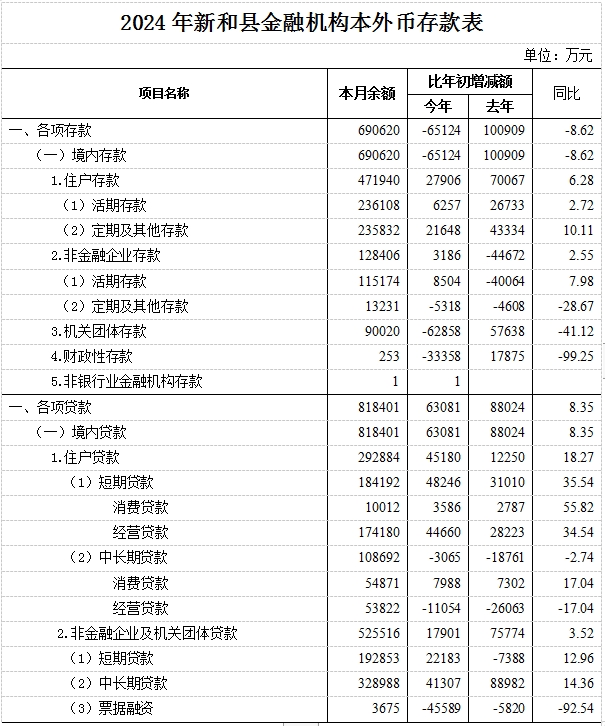 年末金融機構(gòu)各項存款余額為690620萬元,比年初減少65124萬元,同比下降8.62%。其中: 住戶存款余額471940萬元,比年初增加27906萬元,同比增長6.28%。年末金融機構(gòu)各項貸款余額818401萬元,比年初增加63081萬元,同比增長8.35%。