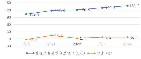 圖2 2020-2024年社會消費品零售總額及其增長速度