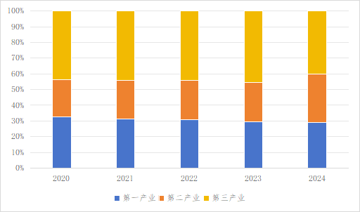 圖1 2020-2024年三次產(chǎn)業(yè)增加值占地區(qū)生產(chǎn)總值比重