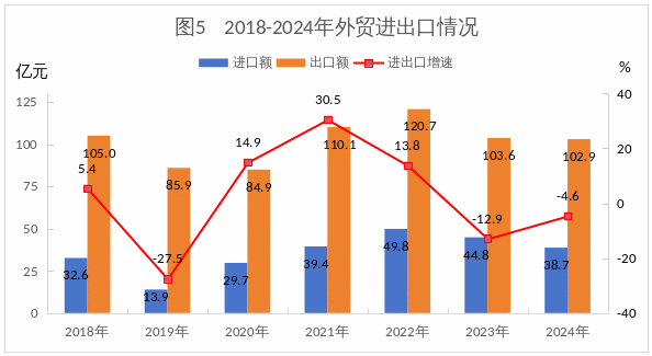 | 進(jìn)出口總額 | 億元 | 141.6 | -4.6 |