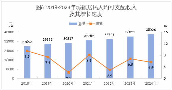 全年城鎮(zhèn)居民人均可支配收入38026元,比上年增長(zhǎng)5.6%。