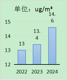 2024年全年空氣質(zhì)量總體優(yōu)良,優(yōu)良天數(shù)比例為99.1%。二氧化硫、二氧化氮、可吸入顆粒物(PM10)、細(xì)顆粒物(PM2.5)年平均濃度分別為4、8、28、14.6微克/立方米,臭氧特定百分位數(shù)平均濃度為118微克/立方米,一氧化碳特定百分位數(shù)平均濃度為0.8毫克/立方米。