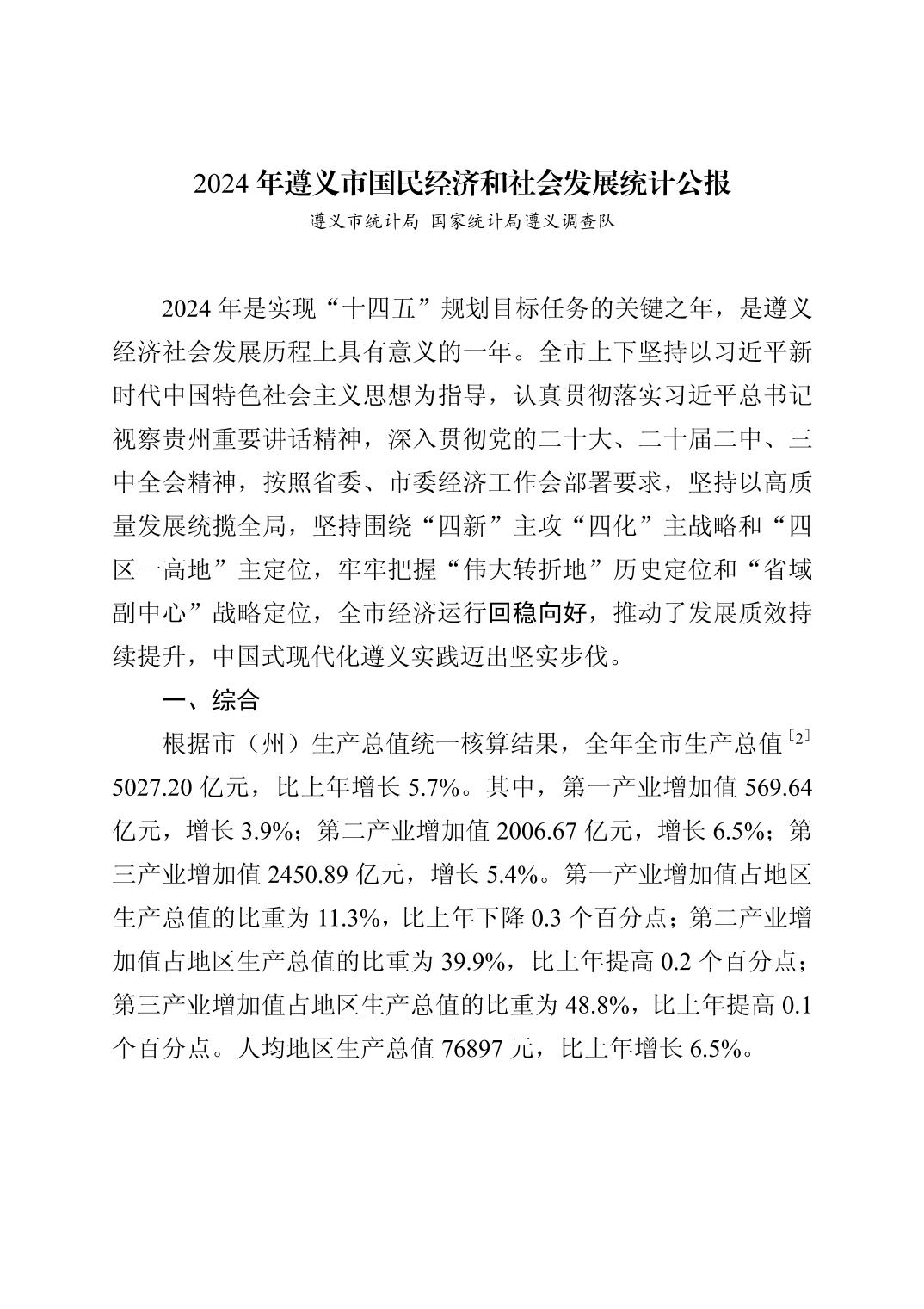 2024年貴州省遵義市人民政府國民經(jīng)濟和社會發(fā)展統(tǒng)計公報(2025年更新)