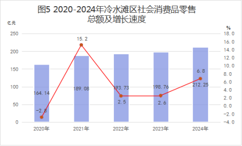 全年社會(huì)消費(fèi)品零售總額212.3億元,同比增長6.8%。分經(jīng)營地看,城鎮(zhèn)消費(fèi)品零售總額176.4億元,同比增長-7.7%;鄉(xiāng)村消費(fèi)品零售總額35.8億元,同比增長372.0%。分行業(yè)大類看(限額以上),批發(fā)業(yè)零售額3.9億元,同比增長85.6%;零售業(yè)零售額61.1億元,同比17.4%;住宿業(yè)零售額1.2億元,同比增長14.7%;餐飲業(yè)零售額6.4億元,同比增長33.5%。分商品類別看(限額以上),糧油、食品類零售額同比增長46.5%,日用品類同比增長17.7%,中西藥品類同比增長73.2%,飲料、煙酒類同比增長24.7%,家具類同比增長-45.0%,汽車類同比增長10.5%。
