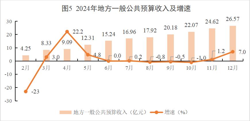 全年實現(xiàn)地方財政收入68.99億元,下降8.2%;地方一般公共預(yù)算收入26.57億元,增長7%;其中稅收收入15.26億元,增長5.1%;地方一般公共預(yù)算支出42.47億元,下降13.6%。