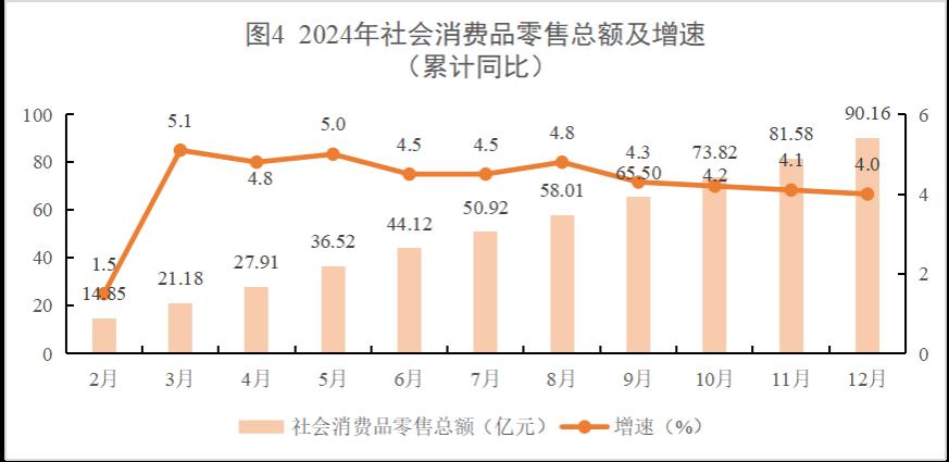 全區(qū)社會消費品零售總額90.16億元,比上年增長4%。其中,區(qū)屬社會消費品零售總額57.96億元,增長4.2%。按行業(yè)分,批發(fā)業(yè)9.85億元,增長4.2%;零售業(yè)38.77億元,增長4%;住宿業(yè)2.61億元,增長4.4%;餐飲業(yè)6.72億元,增長5.1%。按經(jīng)營地分,城鎮(zhèn)實現(xiàn)零售額43.99億元,增長4.1%;鄉(xiāng)村實現(xiàn)零售額13.96億元,增長4.6%。