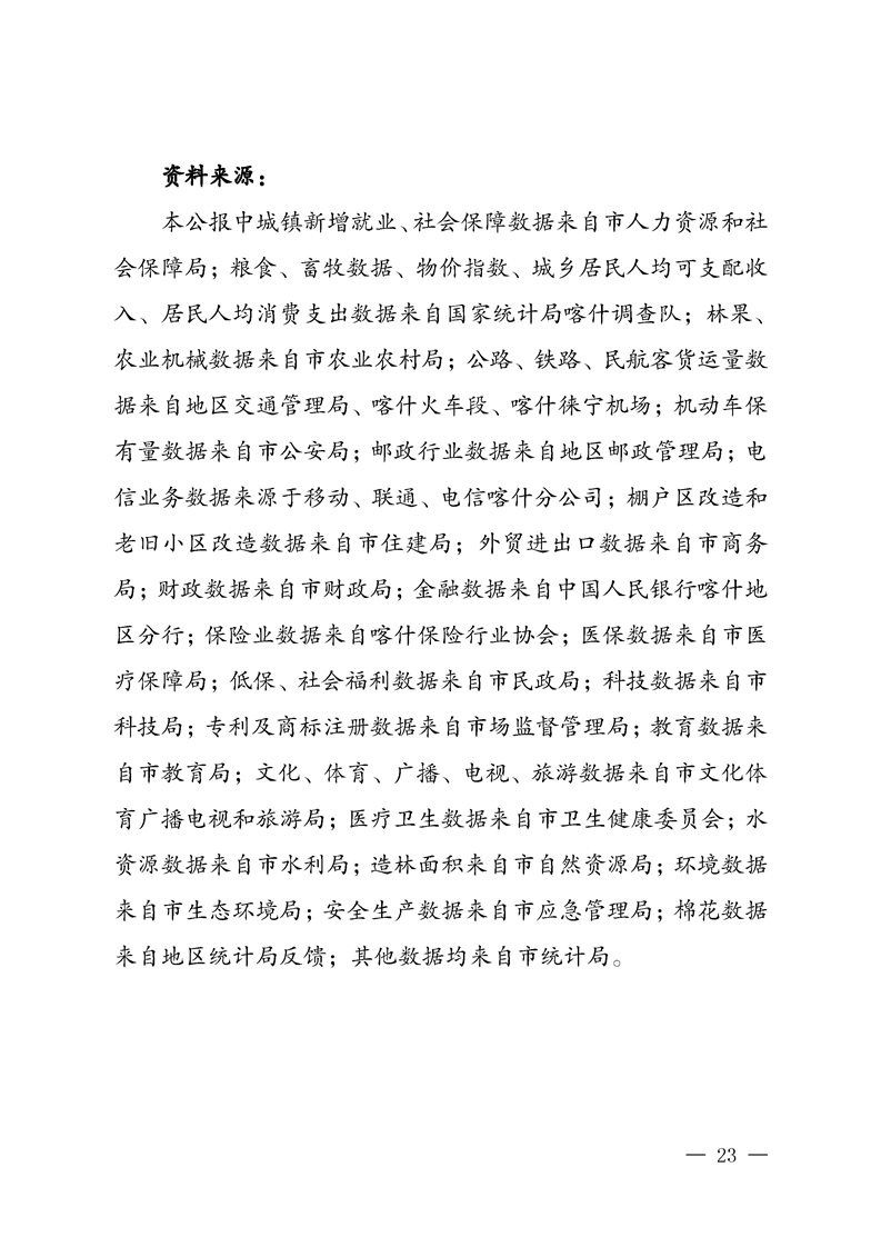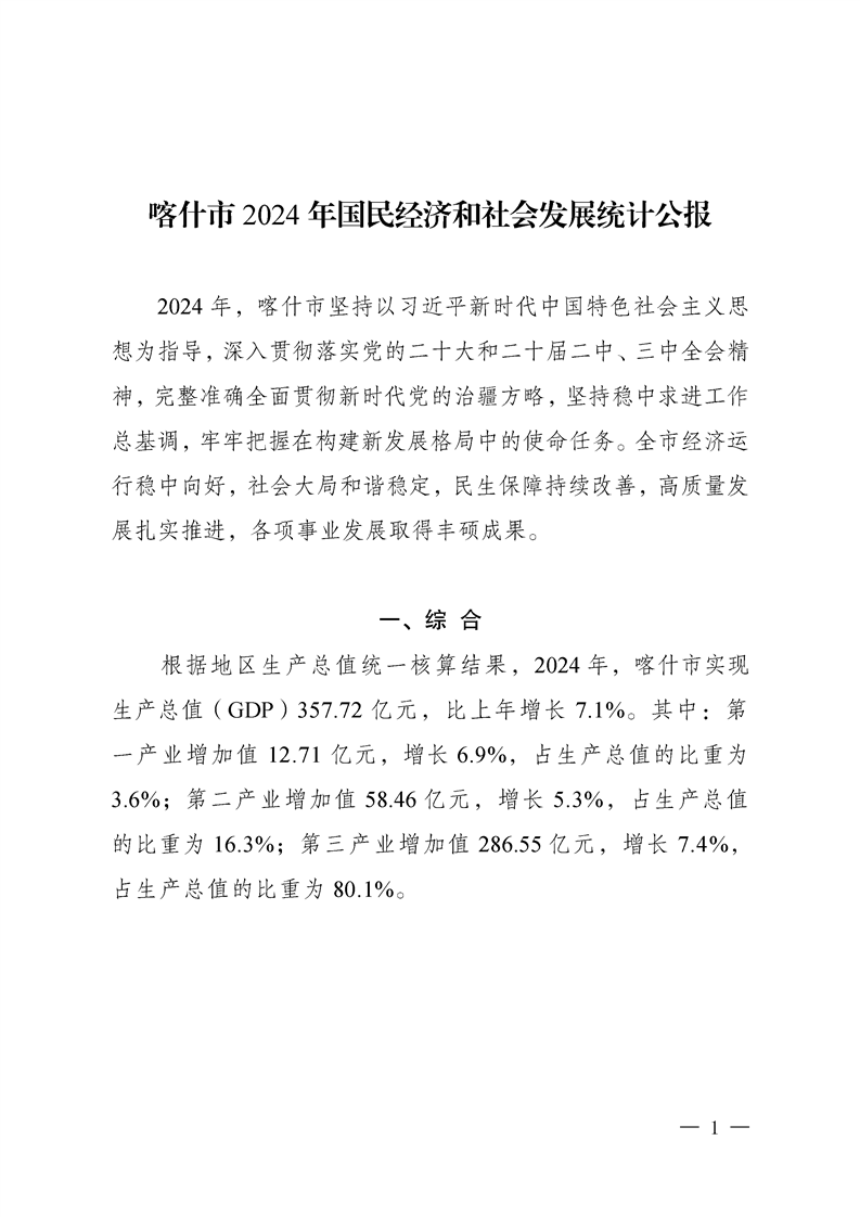 2024年喀什地區(qū)喀什市人民政府國(guó)民經(jīng)濟(jì)和社會(huì)發(fā)展統(tǒng)計(jì)公報(bào)(2025年更新)