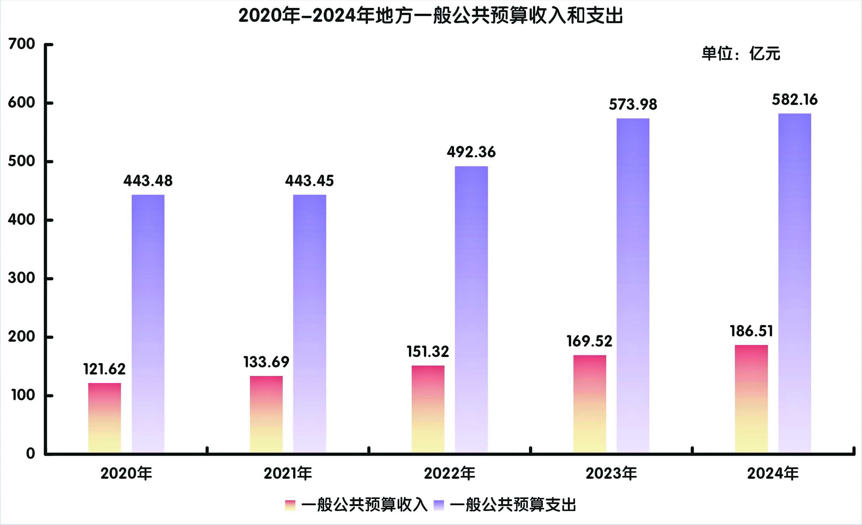 全年地方財(cái)政收入246.90億元,比上年增長8.2%。一般公共預(yù)算收入186.51億元,增長10.0%,其中,稅收收入122.56億元,增長3.5%;非稅收入63.94億元,增長25.1%。地方財(cái)政支出699.84億元,下降3.4%,一般公共預(yù)算支出582.16億元,增長1.4%。