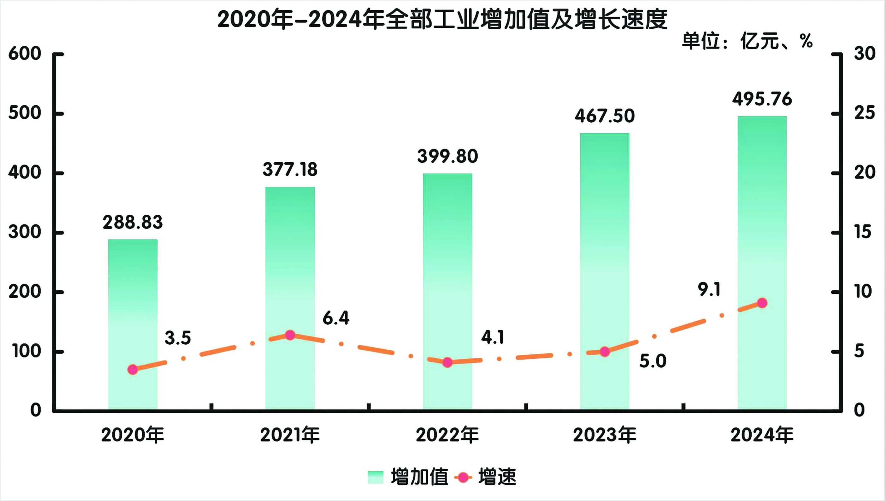 全年全部工業(yè)增加值495.76億元,比上年增長9.1%。規(guī)模以上工業(yè)增加值增長8.2%。在規(guī)模以上工業(yè)中,分經(jīng)濟(jì)類型看,外商及港澳臺(tái)投資企業(yè)增長19.5%,股份制企業(yè)增長8.1%。按所有制看,非公有制經(jīng)濟(jì)增長15.4%,公有制經(jīng)濟(jì)增長2.0%。分門類看,采礦業(yè)增長16.0%,制造業(yè)增長2.7%,電力、熱力、燃?xì)饧八纳a(chǎn)和供應(yīng)業(yè)增長9.7%。新動(dòng)能持續(xù)發(fā)力,戰(zhàn)略新興產(chǎn)業(yè)增加值增長18.5%。