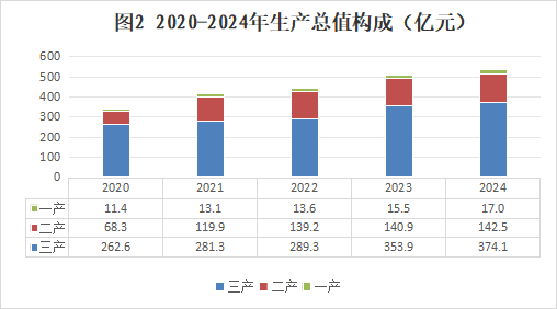 2024年我區(qū)經(jīng)濟穩(wěn)中向好、穩(wěn)中有進,經(jīng)濟總量突破500億元大關,進入全省第九。全年轄區(qū)生產(chǎn)總值總量實現(xiàn)533.6億元,同比增長7.5%。三次產(chǎn)業(yè)占比由上年的3.3:30.6:66.1轉(zhuǎn)為3.2:26.7:70.1。2024年臨汾市堯都區(qū)人民政府國民經(jīng)濟和社會發(fā)展統(tǒng)計公報(2025年更新)