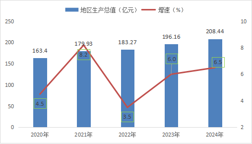 根據(jù)地區(qū)生產(chǎn)總值統(tǒng)一核算初步結(jié)果,2024年大英縣地區(qū)生產(chǎn)總值(GDP)208.44億元,按可比價格計算,比上年增長6.5%。其中,第一產(chǎn)業(yè)增加值28.77億元,增長2.5%;第二產(chǎn)業(yè)增加值75.49億元,增長7.5%;第三產(chǎn)業(yè)增加值104.18億元,增長7.2%。2024年遂寧市大英縣人民政府國民經(jīng)濟和社會發(fā)展統(tǒng)計公報(2025年更新)