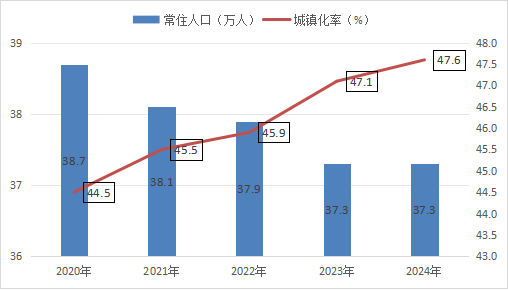 2024年末,全縣戶籍人口50.98萬人,比上年末減少0.30萬人;常住人口37.3萬人,與2023年持平。常住人口城鎮(zhèn)化率47.6%,比上年末提高0.5個百分點。模版下載_十四五_模版下載