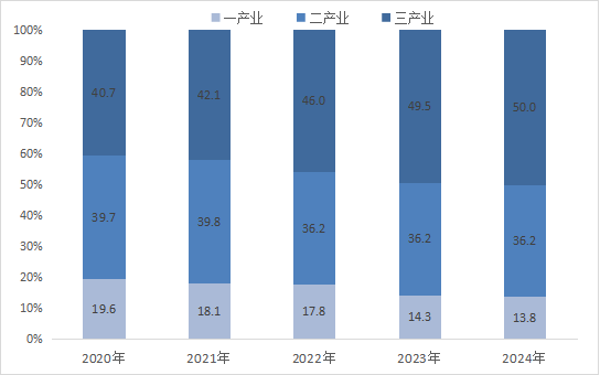 圖2 ?2020-2024年三次產(chǎn)業(yè)占地區(qū)生產(chǎn)總值比重統(tǒng)計公報_十四五_縣域經(jīng)濟