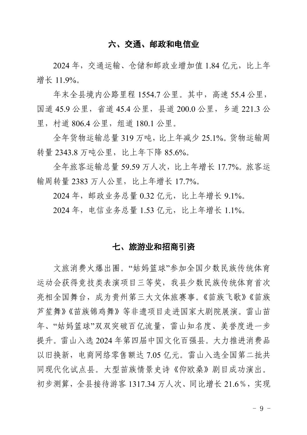 2024年黔東南苗族侗族自治州雷山縣人民政府國(guó)民經(jīng)濟(jì)和社會(huì)發(fā)展統(tǒng)計(jì)公報(bào)(2025年更新)