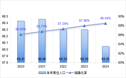 圖4:2020-2024年末常住人口及城鎮(zhèn)化率