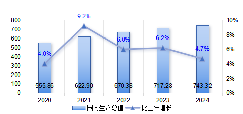 圖1:2020-2024年地區(qū)生產(chǎn)總值及增速