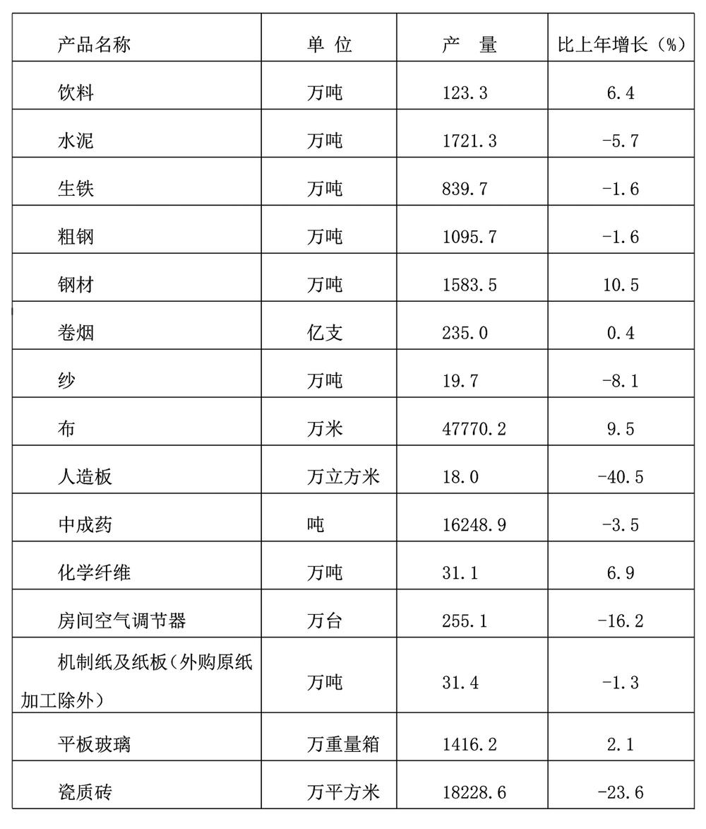 表2 2024年規(guī)上工業(yè)企業(yè)主要產(chǎn)品產(chǎn)量及增長速度