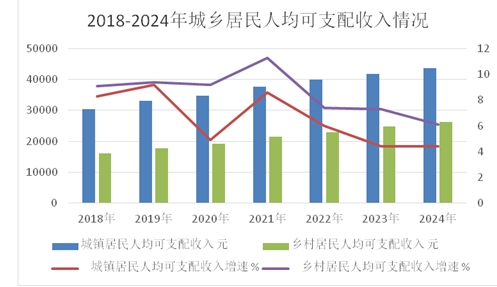 全體居民人均可支配收入33014元,增長5.4%;其中,城鎮(zhèn)居民人均可支配收入43628元,增長4.4%;農(nóng)村居民人均可支配收入26207元,增長6.1%。