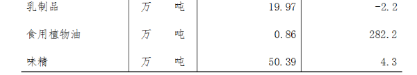 在規(guī)模以上工業(yè)行業(yè)中,食品制造業(yè)增加值增長24.9%,木材加工業(yè)增長24.7%,非金屬礦物制品業(yè)增長11.4%,農(nóng)副食品加工業(yè)增長6.1%,電力、熱力生產(chǎn)和供應(yīng)業(yè)增長1.9%,煤炭開采和洗選業(yè)下降2.4%,化學(xué)原料及化學(xué)制品制造業(yè)下降5.8%,有色金屬礦采選業(yè)下降9.4%,酒、飲料制造業(yè)下降14.0%,主要產(chǎn)品產(chǎn)量[5]有增有降(見表3)。