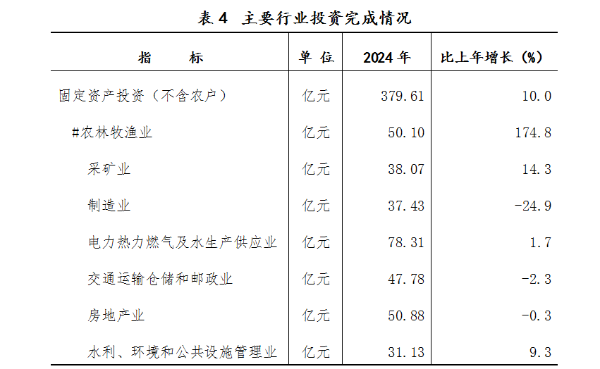 全社會固定資產(chǎn)投資387.10億元,比上年增長8.0%。固定資產(chǎn)投資(不含農(nóng)戶)379.61億元,增長10.0%。