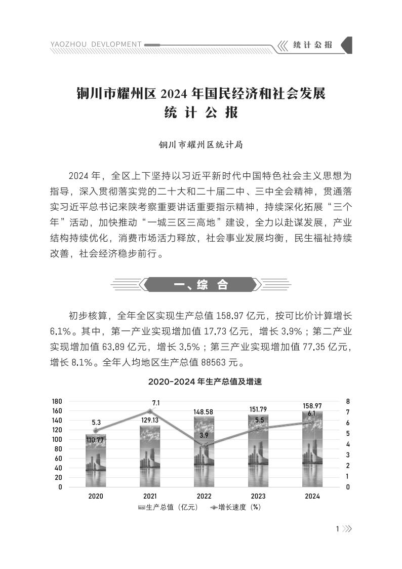 2024年銅川市耀州區(qū)人民政府國民經(jīng)濟和社會發(fā)展統(tǒng)計公報(2025年更新)