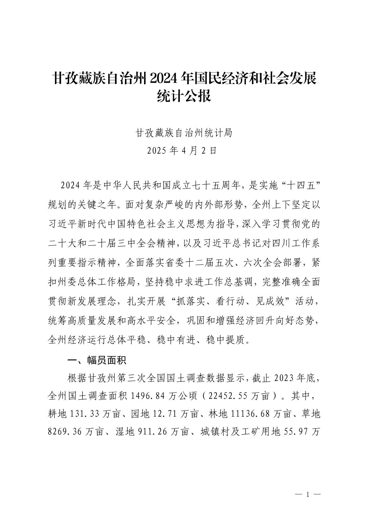 2024年四川省甘孜藏族自治州人民政府國民經(jīng)濟(jì)和社會(huì)發(fā)展統(tǒng)計(jì)公報(bào)(2025年更新)