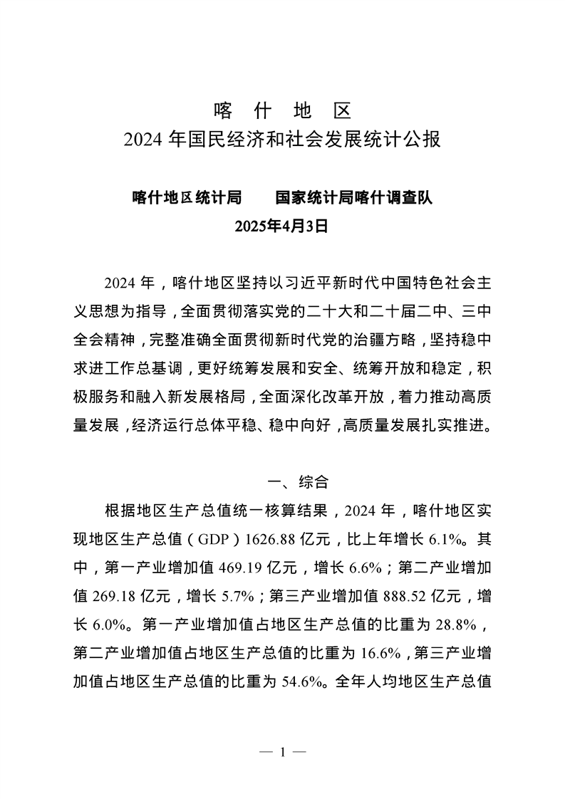 2024年新疆維吾爾自治區(qū)喀什地區(qū)人民政府國民經濟和社會發(fā)展統(tǒng)計公報(2025年更新)