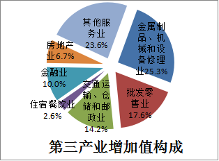 全年服務業(yè)增加值133.4億元,比上年增長10.4%。規(guī)模以上服務業(yè)[3]企業(yè)營業(yè)收入36.04億元,增長0.4%。