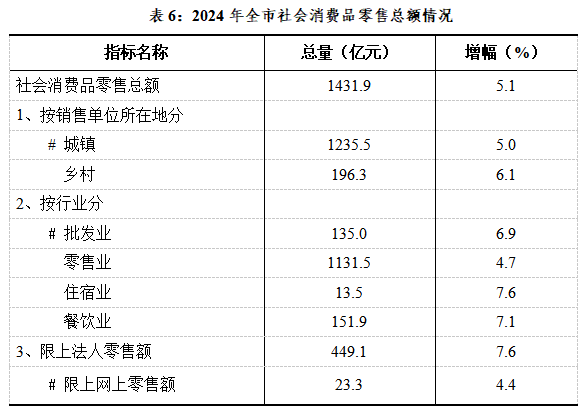 4、根據(jù)《國民經(jīng)濟行業(yè)分類》(GB/T4754-2017),國家統(tǒng)計局對三次產(chǎn)業(yè)劃分進行了修訂,將“農(nóng)、林、牧、漁業(yè)”中的“農(nóng)、林、牧、漁專業(yè)及輔助性活動”、“采礦業(yè)”中的“開采專業(yè)及輔助性活動”和“制造業(yè)”中的“金屬制品、機械和設(shè)備修理業(yè)”等三個大類調(diào)入第三產(chǎn)業(yè),2024年三次產(chǎn)業(yè)數(shù)據(jù)按照此標準進行統(tǒng)計。