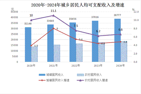 抽樣調查顯示,全縣城鄉(xiāng)居民人均可支配收入為25220元,同比增長6.2%。其中,城鎮(zhèn)居民人均可支配收入38777元,同比增長4.8%;農村居民人均可支配收入18528元,同比增長6.6%。全縣城鄉(xiāng)居民人均消費支出為17414元,同比增長5.4%。其中,城鎮(zhèn)居民人均消費支出23275元,同比增長4.5%;農村居民人均消費支出14521元,同比增長5.4%。