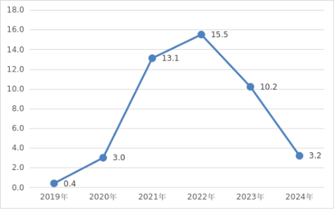 圖三??2019-2024年社會消費品零售總額