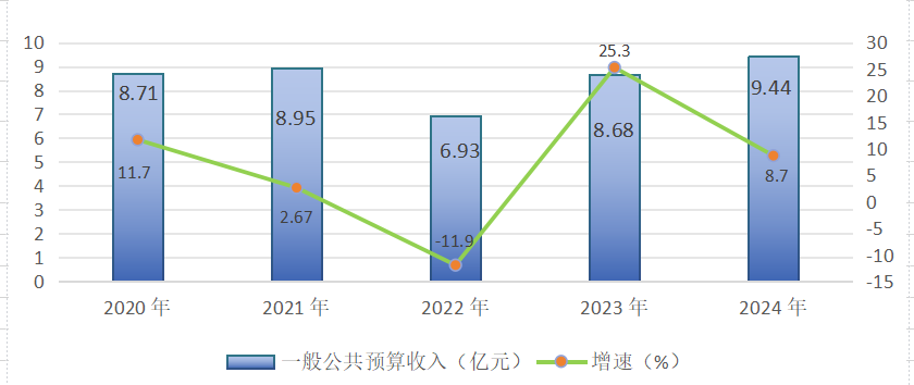 圖5:2020-2024年白銀區(qū)一般公共預(yù)算收入及增長情況