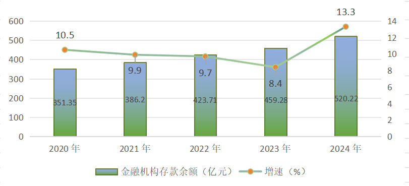 圖6:2020-2024年白銀區(qū)金融機(jī)構(gòu)存款余額及增長情況