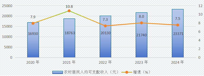 圖9: 2020-2024年白銀區(qū)農(nóng)村居民人均可支配收入及增長情況