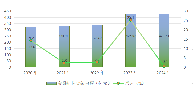圖7:2020-2024年白銀區(qū)金融機(jī)構(gòu)貸款余額及增長情況