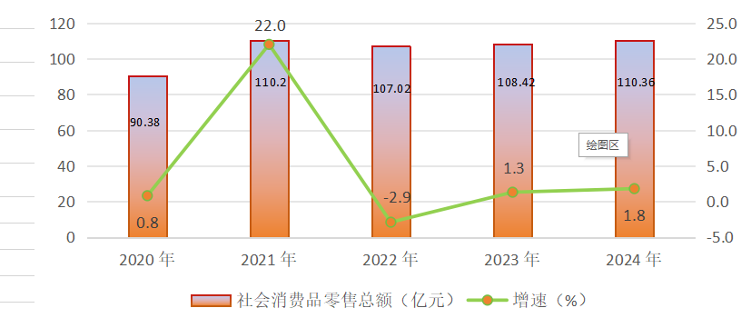 圖3:2020-2024年白銀區(qū)社會消費品零售總額及增長情況